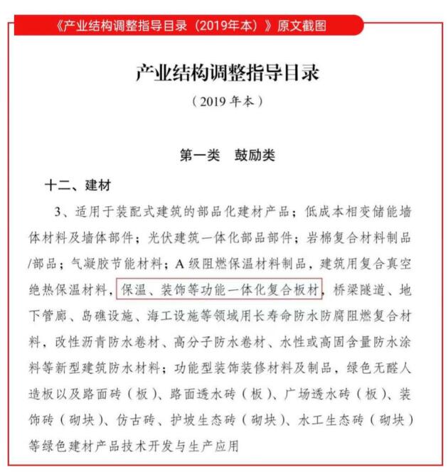 **发改委发布的《产业结构调整指导目录》,也将保温装饰一体板被列入鼓励类产品;